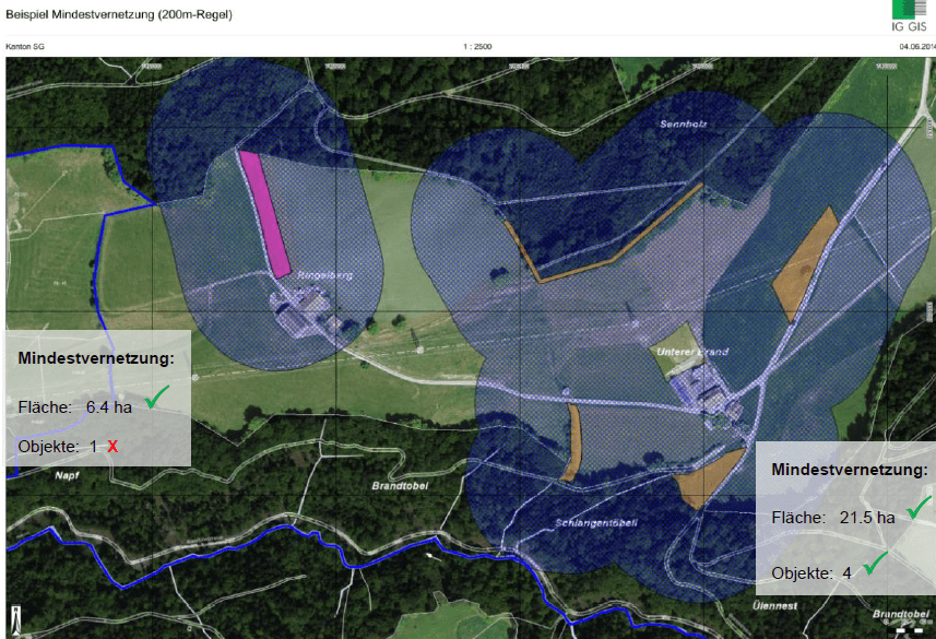 - Anbindungen an umliegende Flächen ausserhalb des Siedlungsgebiets (z. B. Ökoflächen in der Landwirtschaft, Wälder, Gewässerräume) hergestellt oder verbessert werden können